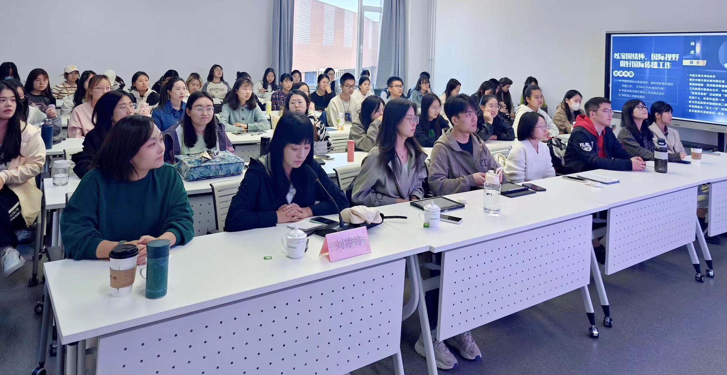 杨成站长结合近年来国际传播工作中的生动案例,对国家级英文日报——中国日报如何将家国情怀和国际视野融入国际传播工作进行了深入讲解。杨站长指出:成为一名合格的国际传播工作者,要深入学习贯彻习近平总书记关于加强国际传播能力建设的重要论述,要不断提升格局,拓宽视野,提高理论水平、专业能力、语言能力,希望同学们为“讲好中国故事、传播好中国声音,向世界展现真实、立体、全面的中国”而积极努力。